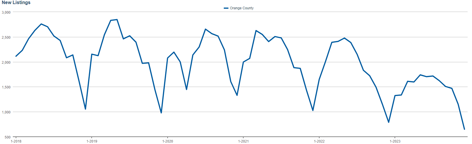 Orange County saw a surge of new listings in December 2023, with 650 properties hitting the market. This influx of new options is a positive sign for prospective buyers seeking to find their dream homes in this desirable location.
