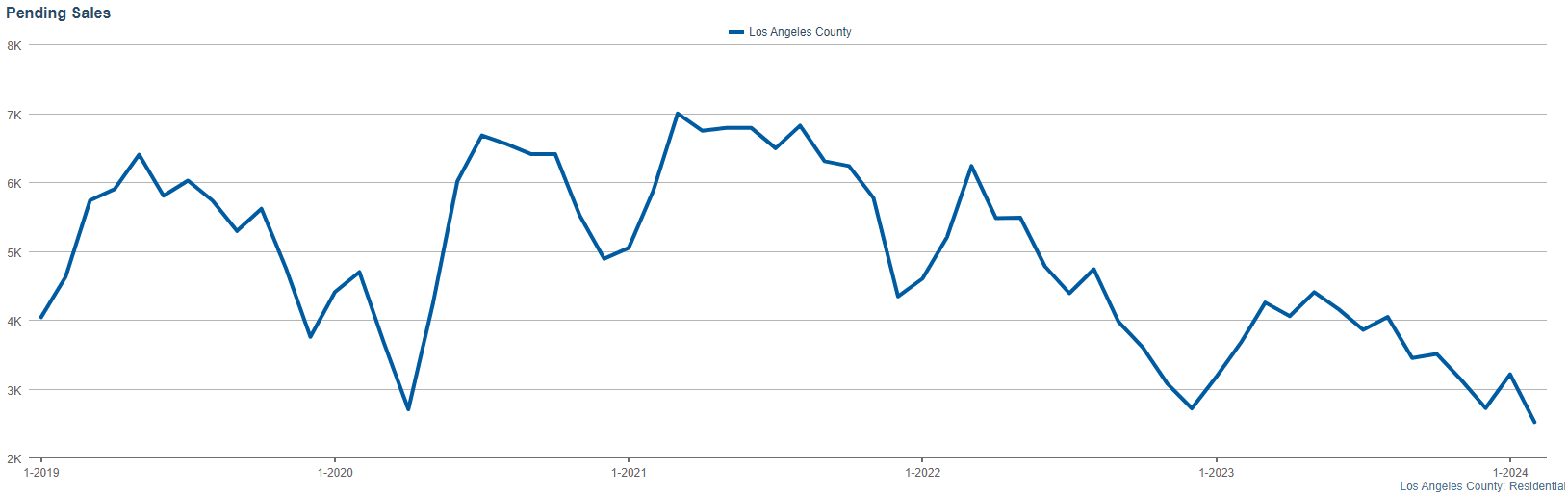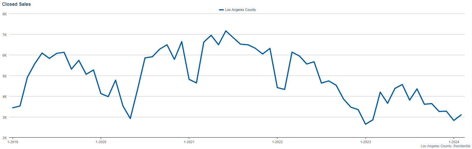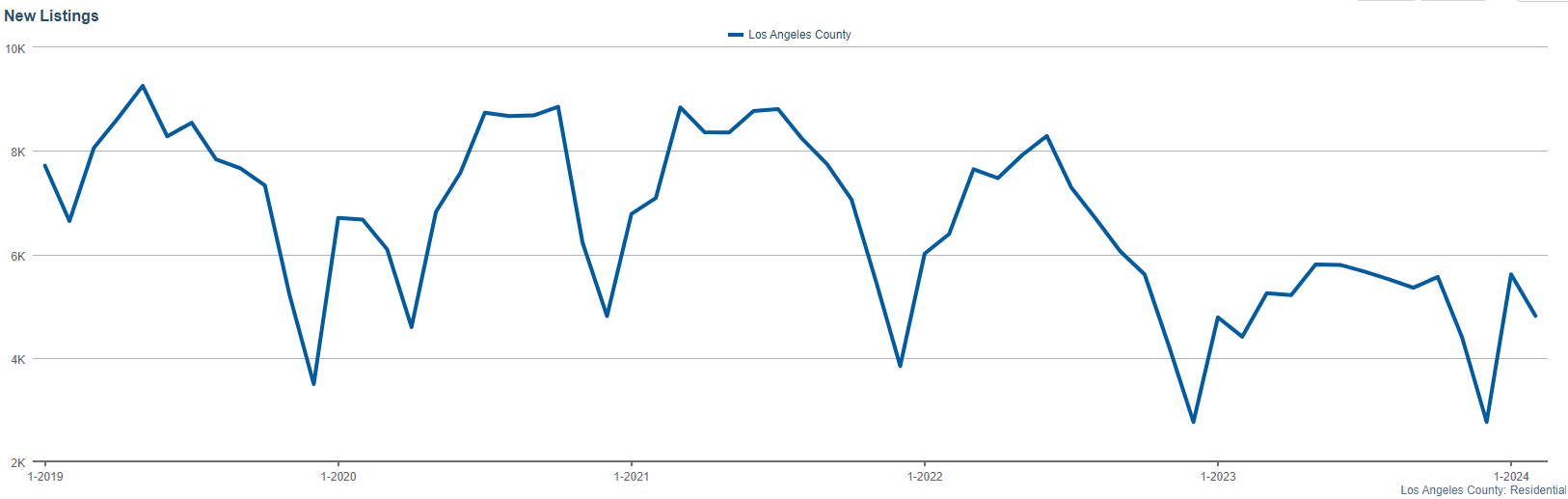 February 2024 saw a total of 4,810 new listings in Los Angeles County. This figure represents a healthy level of activity by sellers in the market and introduces potential buyers to a variety of fresh options, ranging from luxury estates to charming single-family homes.
