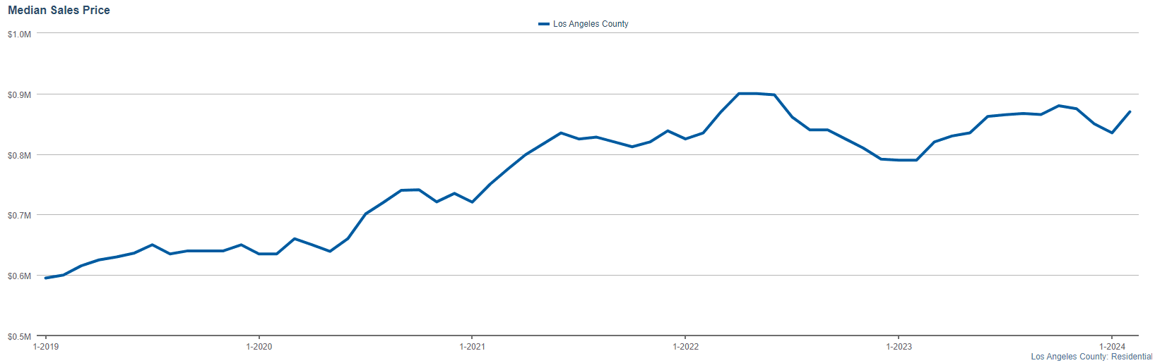 In conclusion, Los Angeles County's real estate market continued its strong performance in February 2024 across all key indicators. With a consistent number of new and active listings, robust sales activity, significant transaction volume, and a balanced median sales price, it continues to assert itself as a dynamic and attractive real estate market.