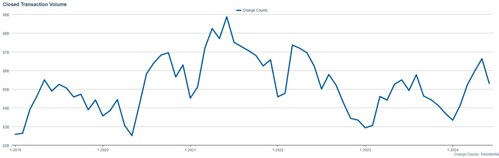 The total closed transaction volume for June reached a staggering $5,303,950,596. This impressive figure highlights the significant economic activity within the Orange County real estate market, underscoring its appeal as a hotbed for both residential and investment properties.