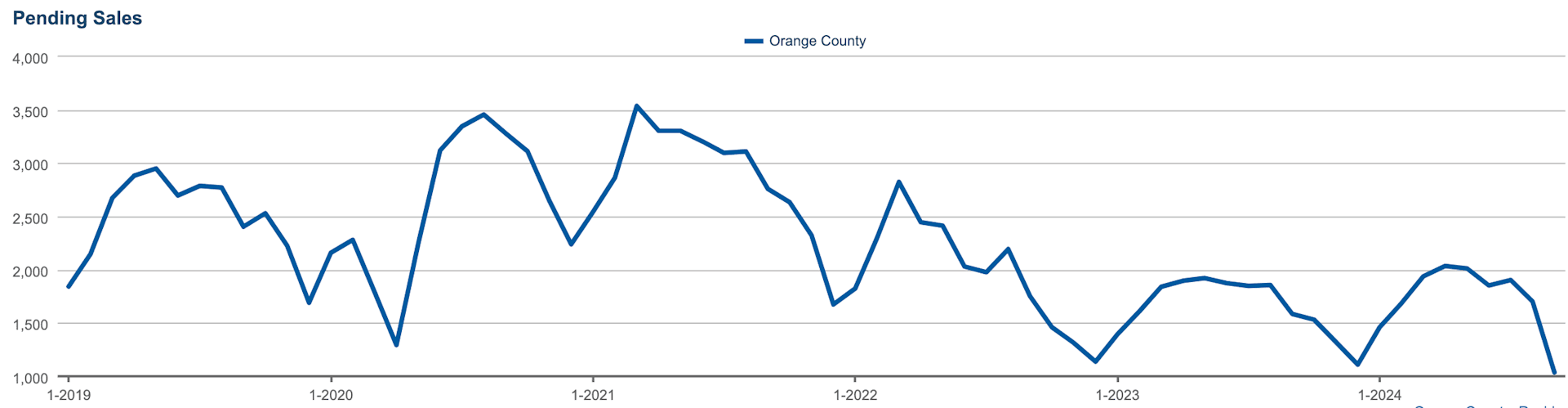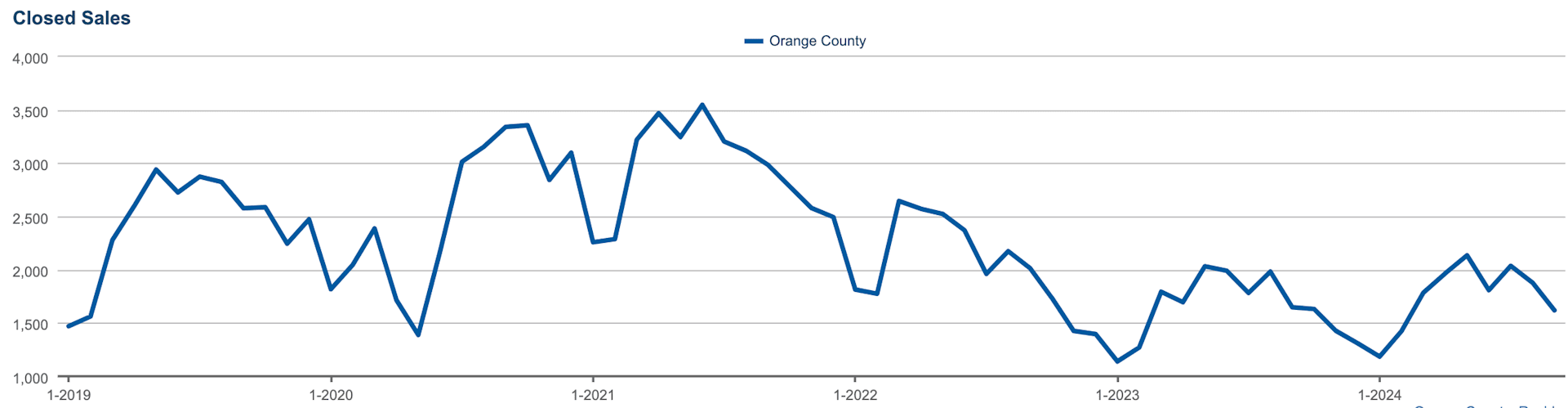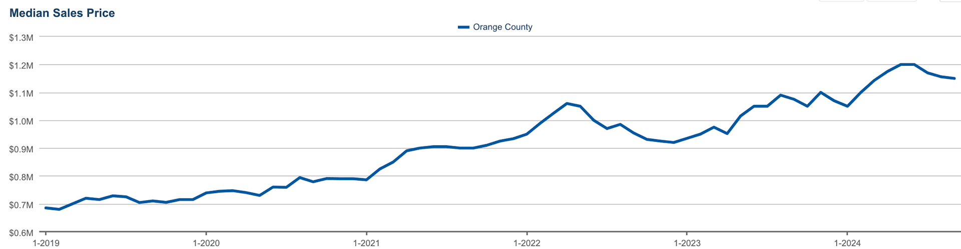 The median sales price in September 2024 stood at $1,150,000. While this represents a slight decrease from earlier months, it still reflects a stable and competitive market. This price point is indicative of Orange County's enduring appeal and the premium associated with living in this sought-after area.