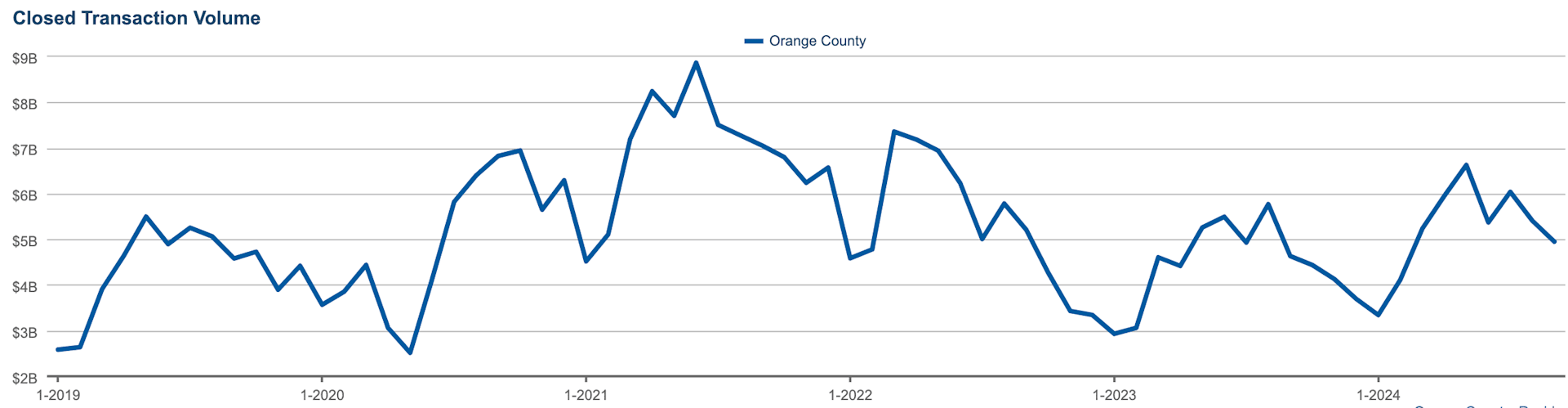 The closed transaction volume reached an impressive $4,948,884,768, highlighting the significant economic activity within the region. This substantial figure not only reflects the high-value nature of transactions but also underscores the strong investment potential that Orange County offers to both domestic and international buyers.