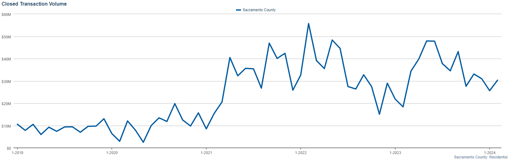 In conclusion, Sacramento County's real estate market maintained solid performance in February 2024 across all key indicators. With a steady number of new and active listings, robust sales activity, significant transaction volume, and a balanced median sales price, it continues to prove itself as a dynamic and attractive real estate market.