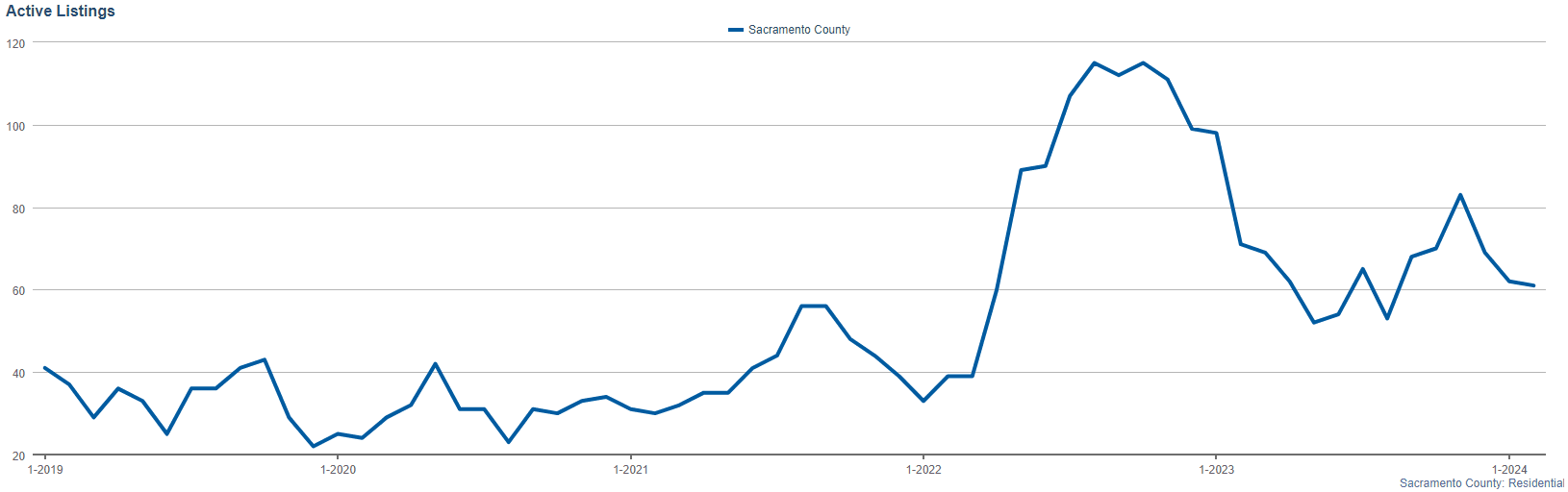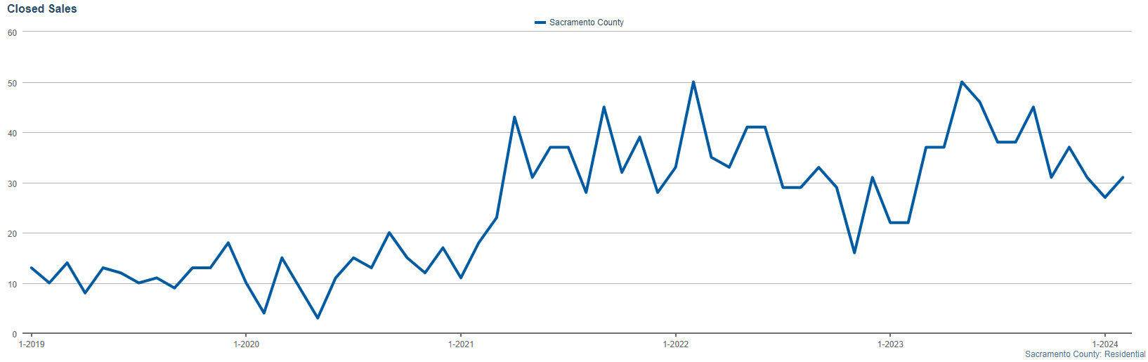 The active listings for the month stood at 61. Although this number might seem small compared to larger markets, it signifies a balanced inventory level for Sacramento County, offering a range of choices for those looking to invest or find their dream home in this region.