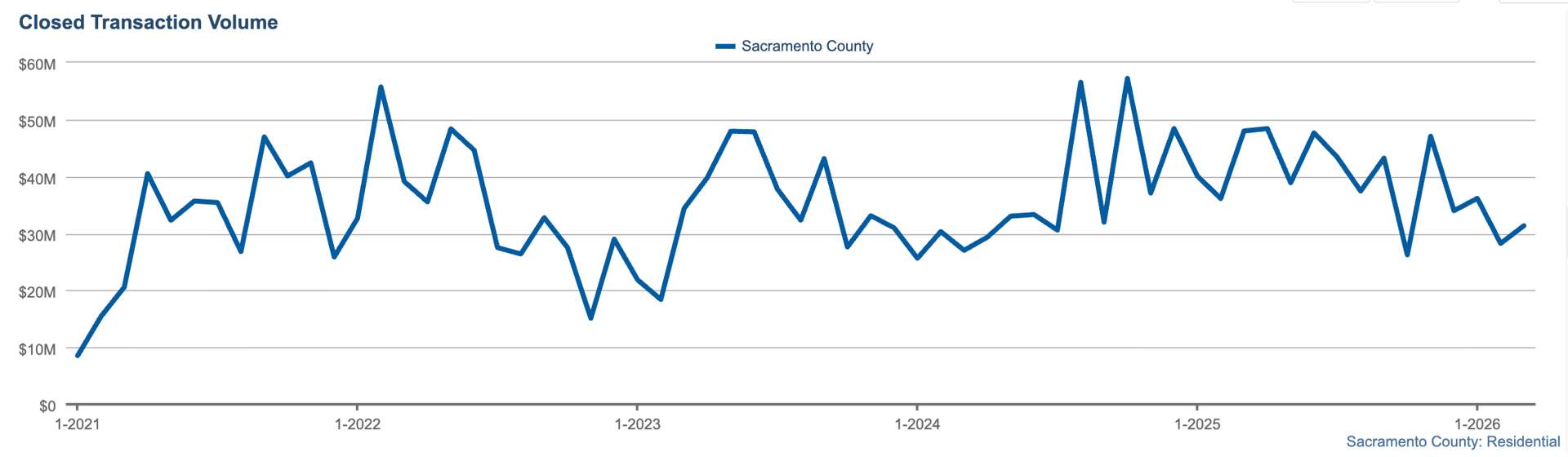 While the volume reflects the smaller inventory footprint currently available, it still represents a significant flow of capital into the Sacramento housing market. This volume underscores the enduring value of residential assets in the region and confirms that Sacramento remains a primary destination for buyers looking to maximize their purchasing power without sacrificing the California lifestyle.
