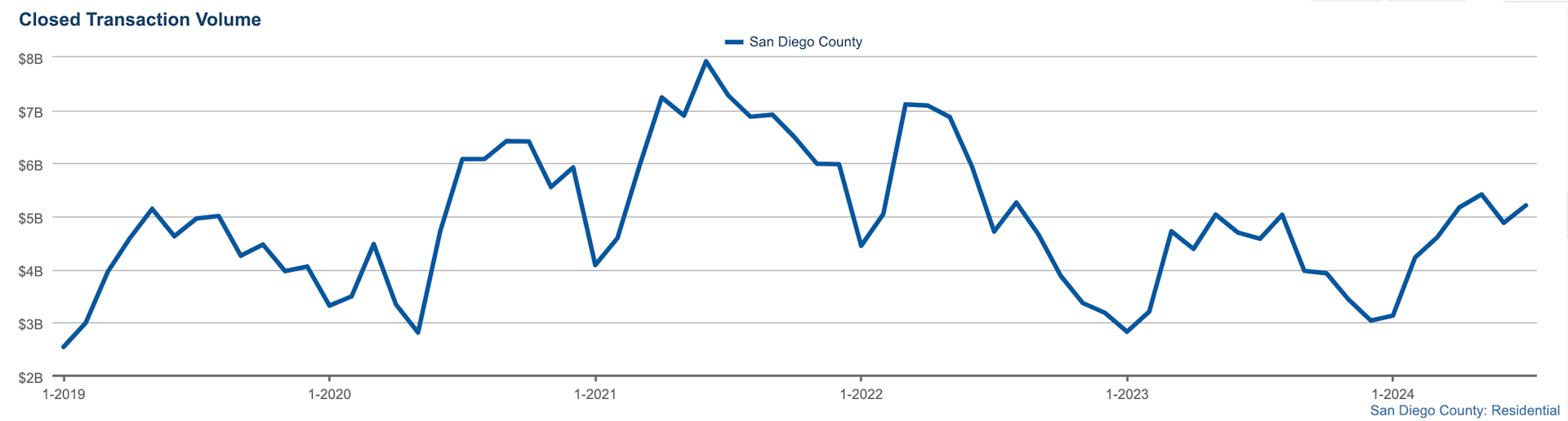 July's closed transaction volume reached an impressive $5,209,292,826. This figure not only highlights the high level of activity but also underscores the value of properties being bought and sold in San Diego County.