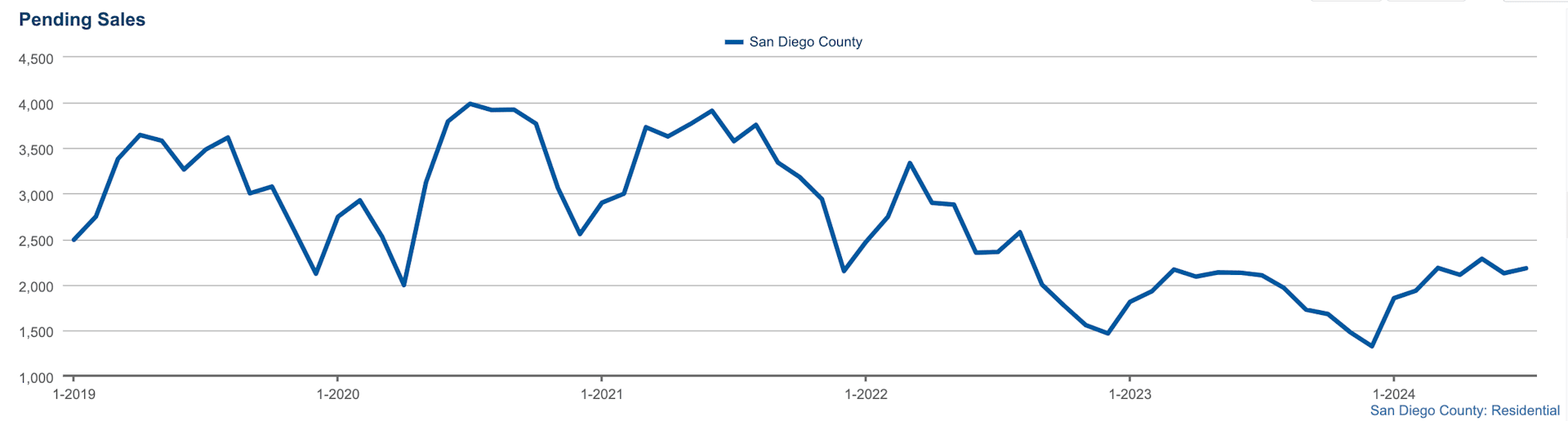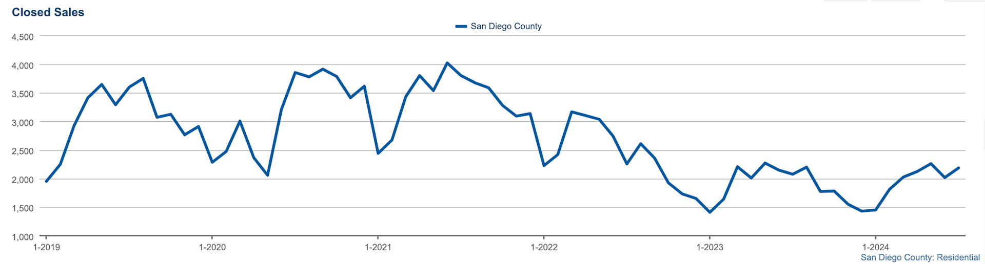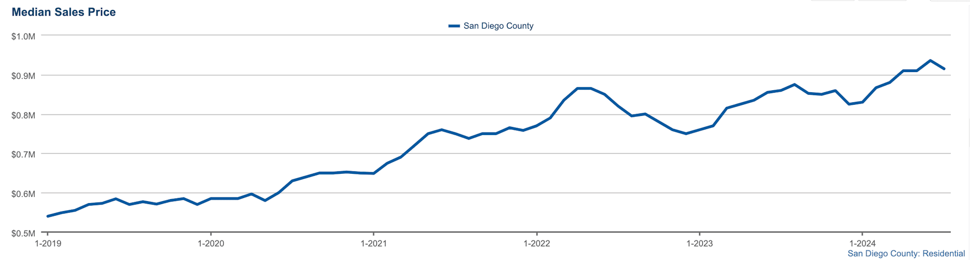 The median sales price for homes in July was $915,000. This figure reflects the premium nature of the San Diego County market, underscoring its desirability and strong demand for properties in this region.