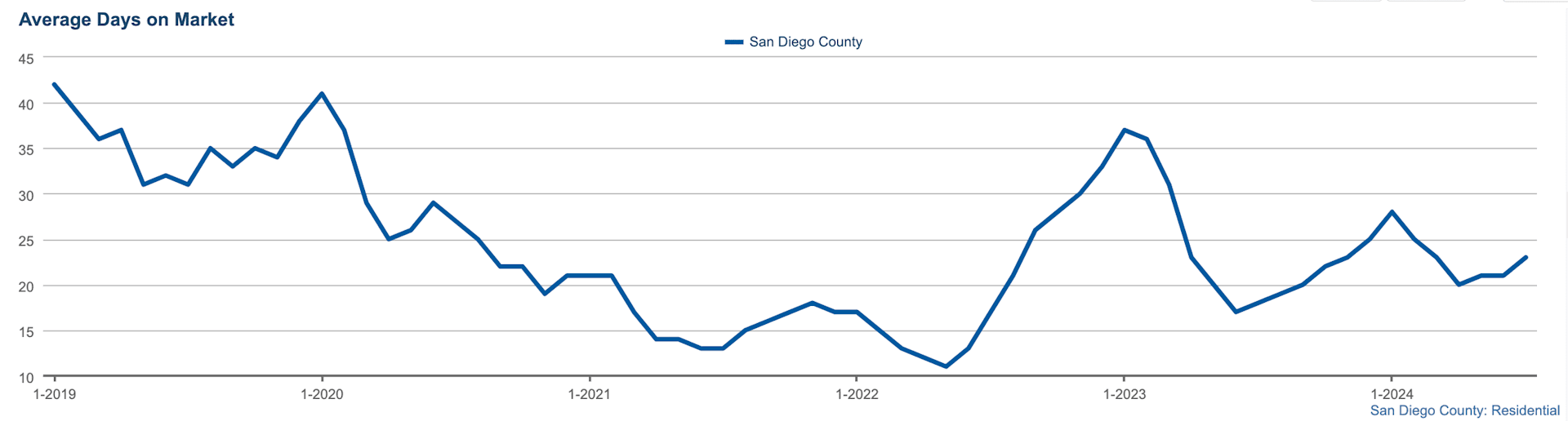 Homes in San Diego County spent an average of 23 days on the market before selling. This quick turnover time suggests that well-priced homes continue to attract buyers rapidly, even with the increased inventory.