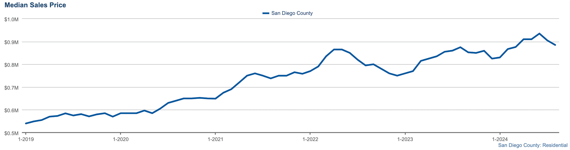 The median sales price in San Diego County for August stood at $885,000. This figure provides a critical benchmark for understanding current pricing dynamics in the region. While there may be slight fluctuations compared to previous months, the consistent median price suggests stability in the market, making it an attractive point for potential buyers looking to invest in San Diego.