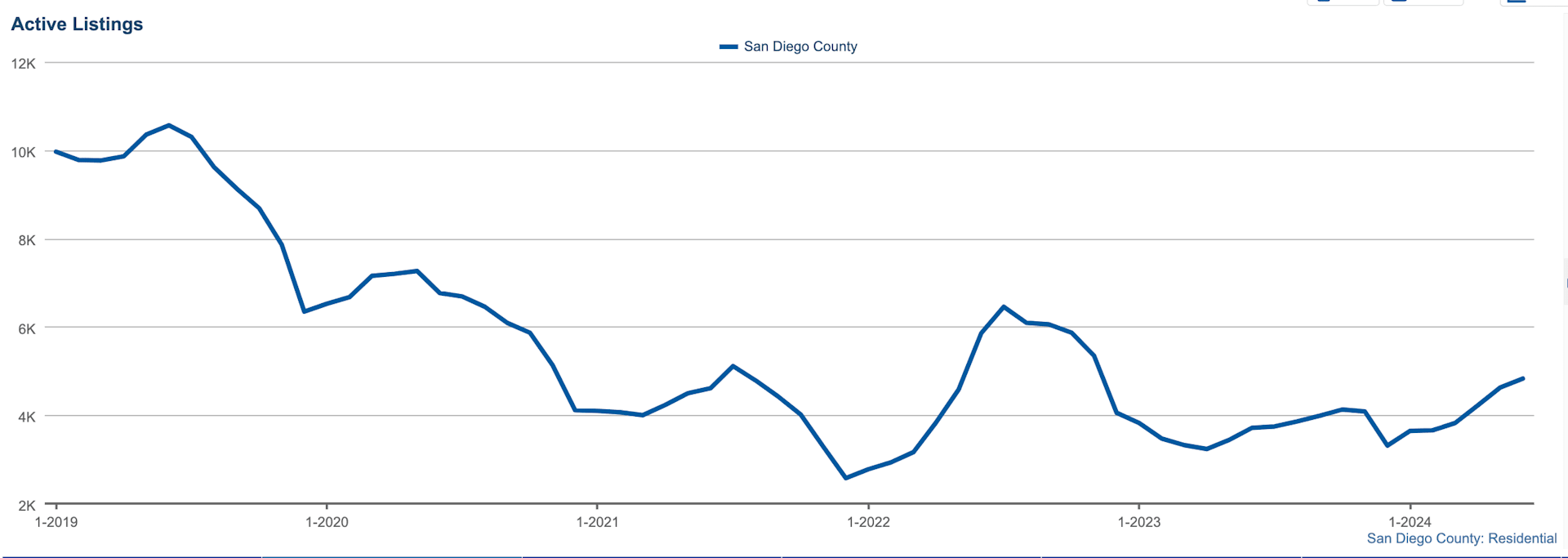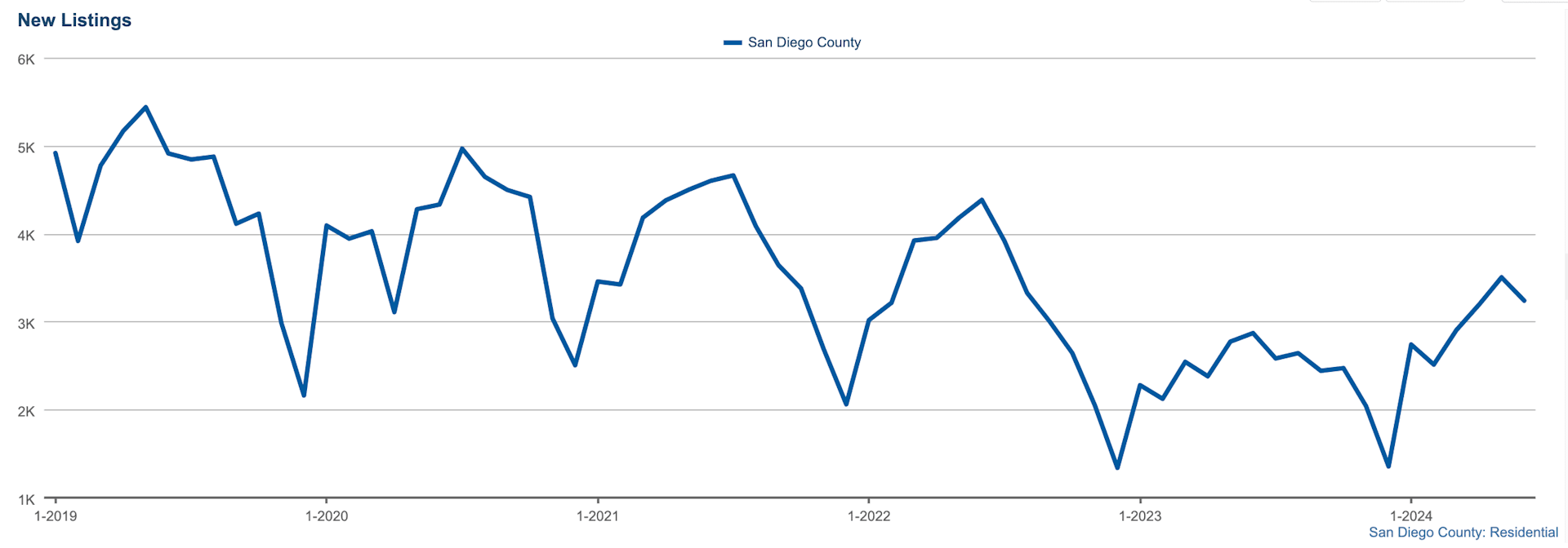 In June 2024, there were 3,239 new listings in the San Diego County market. This number indicates a slight increase from previous months, suggesting that more homeowners are looking to sell their properties.